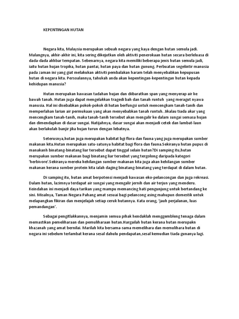 Karangan Kepentingan Hutan Pdf